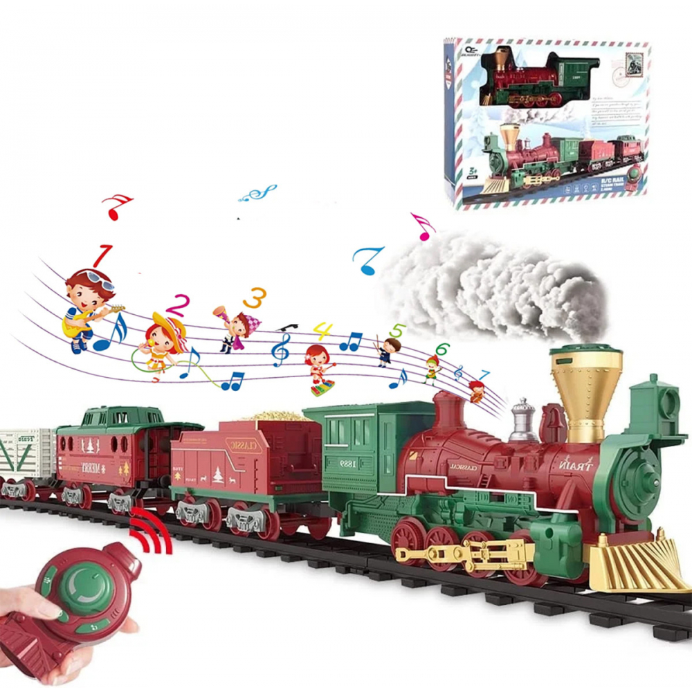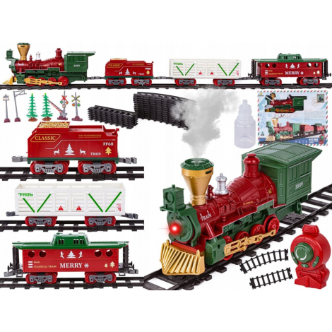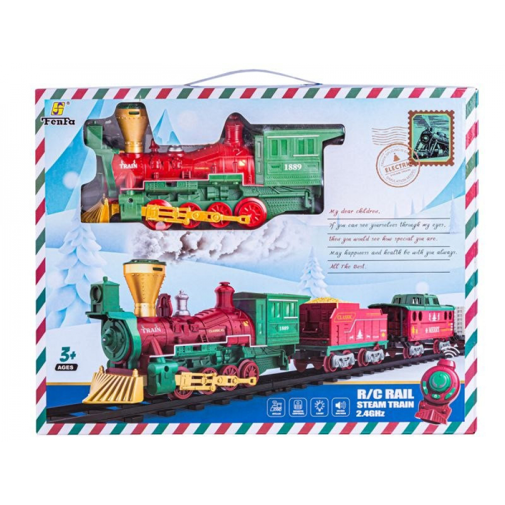 Железная дорога Новогодний поезд Fenfa (3 вагона, пар, пульт, свет, звук) - 1613F – это увлекательная игра, которая не только займет вашего малыша на долгое время, но и принесет много пользы. Набор включает в себя реалистичный поезд на пульте управления, дорожные знаки, елочки и множество интересных деталей. Оборудованный светящимися сигнальными огнями, поезд может двигаться даже в темноте. Он также пускает пар и издает звуки настоящего поезда. Саму железную дорогу можно собирать по-разному, создавая уникальные и интересные маршруты.